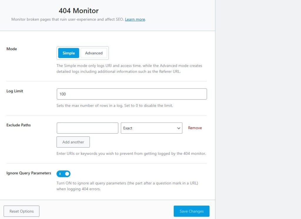 The 404 Monitor tracks broken URLs that can harm user experience and SEO performance. Fixing these errors helps maintain link equity and prevents ranking drops over time.