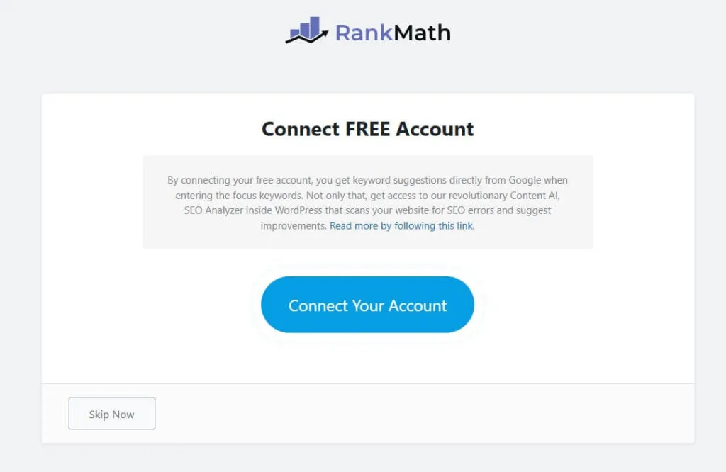 After installing and activating the Rank Math SEO plugin, you’ll come to the Rank Math setup wizard page. Now you need to create a free account to continue with the Rank Math SEO plugin.Â