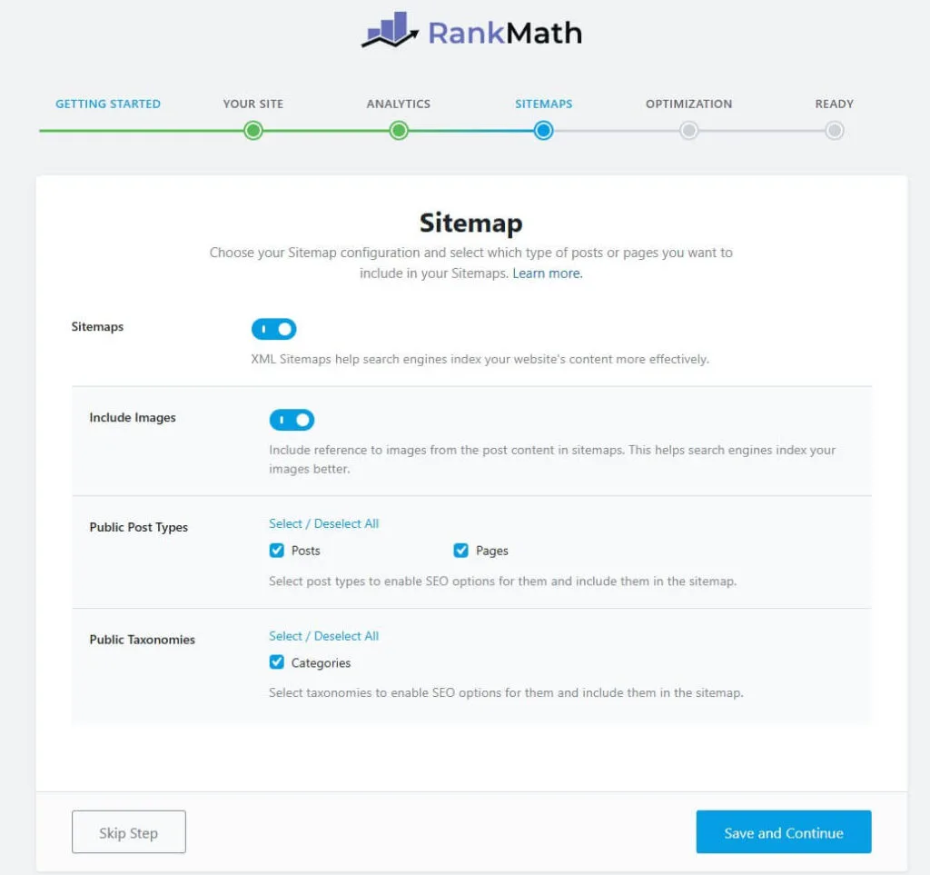 Now you need to set up your sitemap, and Rank Math allows you to use an HTML sitemap for your website. But if you are not comfortable with the advanced settings, then I suggest skipping this step.
