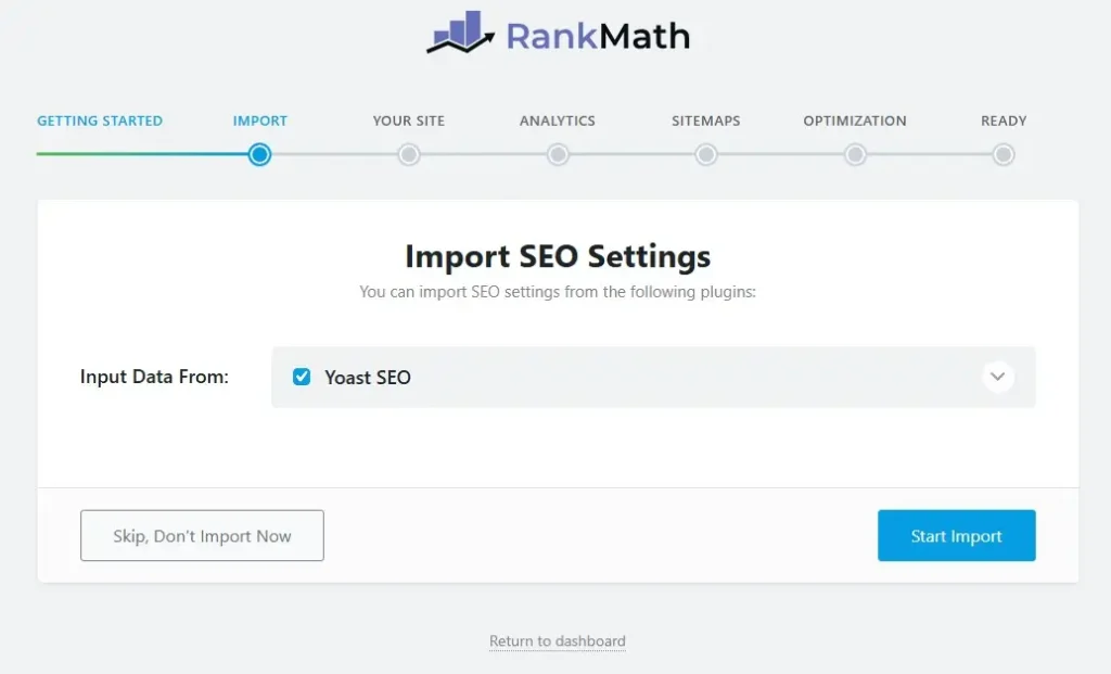 Now that everything is set up, you’re ready to use the Rank Math SEO plugin. Click on Return to Dashboard to go back to your WordPress dashboard.
