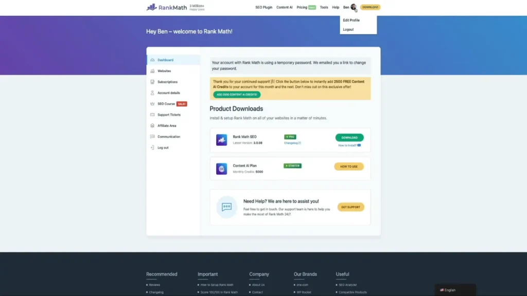Once you purchase Rank Math content AI, you have to connect your Rank Math account to your website to use your Rank Math credit.Â