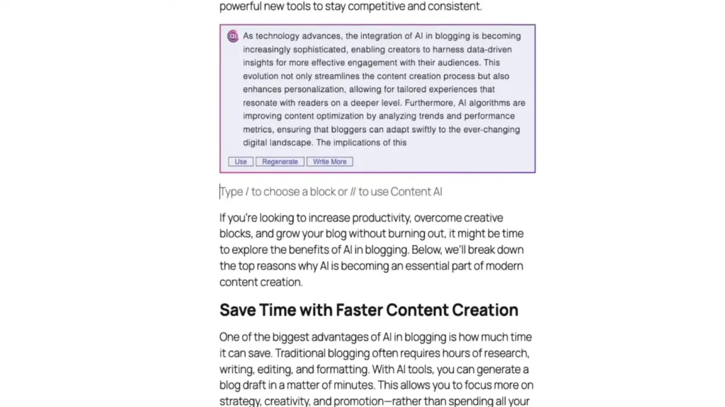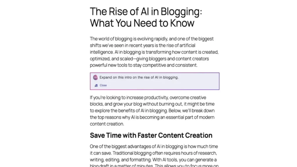Then prompt something like this, “Expand to this intro on the rise of AI in blogging,” and hit your enter key.Â