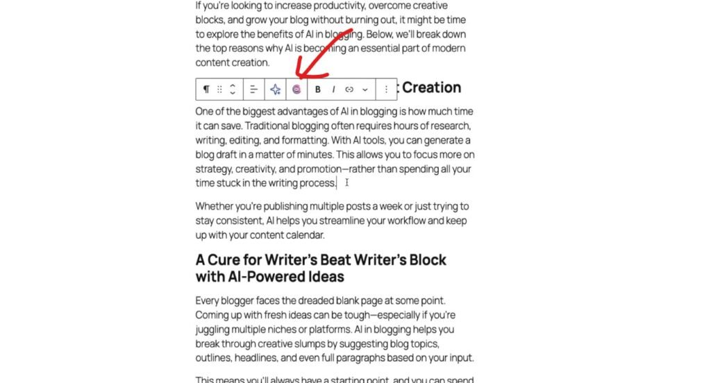 Once you select the paragraph, this kind of top bar will appear. Now yyou haveto click on the Content AI icon.Â
