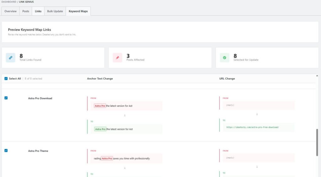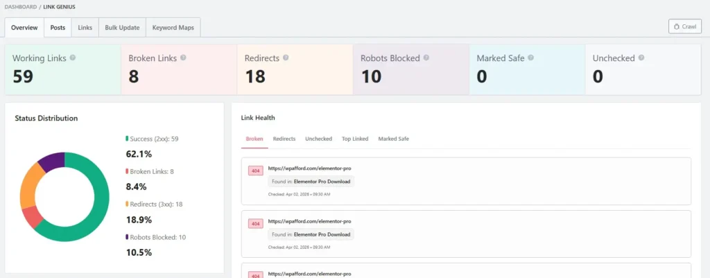 When I started using Link Genius, I could clearly see all my internal links in one place. It shows working links, broken links, redirects, and link issues.