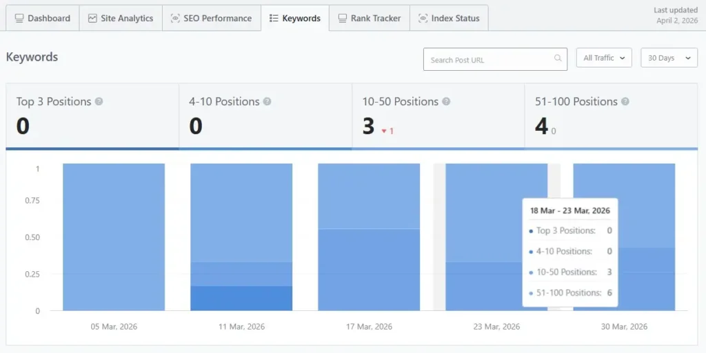 - Keyword Rank Tracking: Track performance of focus keywords over time.