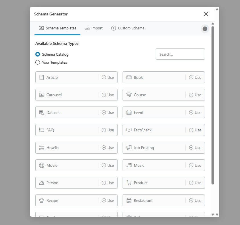 When I first used the Rank Math Schema Generator, I realized how easy schema markup can be. Instead of using code, I can choose from ready-made schema types like article, FAQ, product, and more.